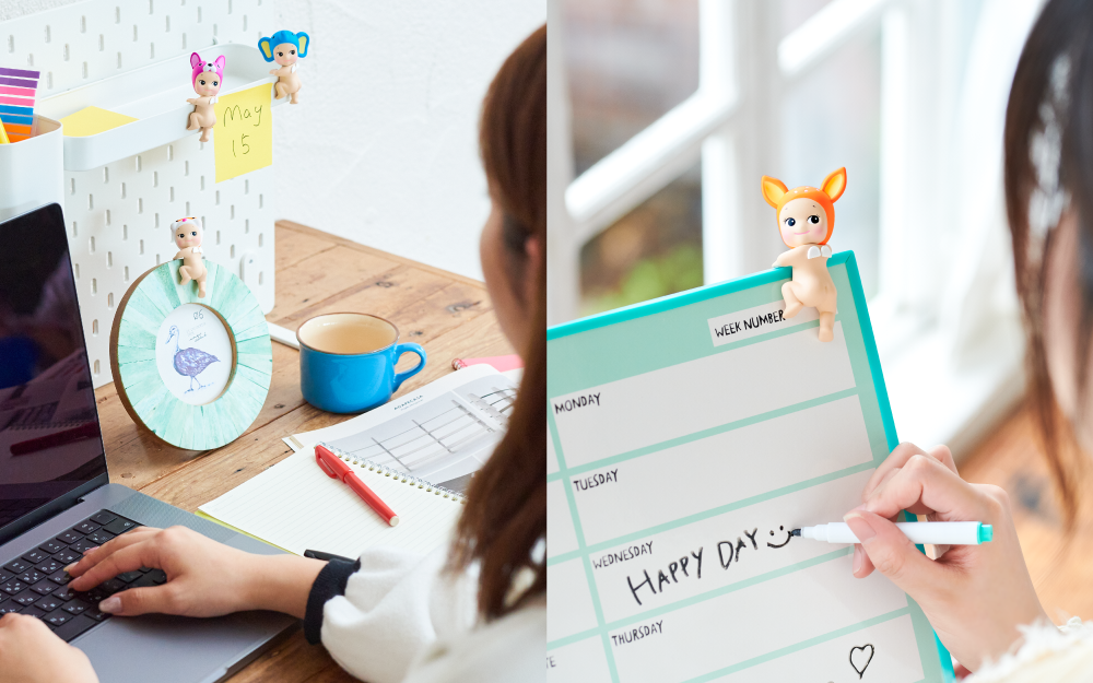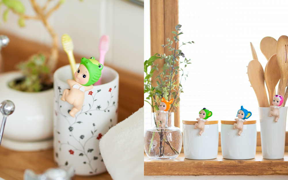 Sonny Angel HIPPERS are approximately the same size as regular Sonny Angel figures. You can attach Sonny Angel HIPPERS to any flat surface with the adhered adhesive tape. You can remove and reattach several times.